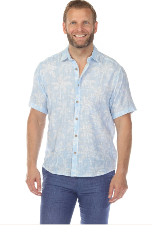 Men’s Button Down Cross Hatch with Tropical Leaf Design