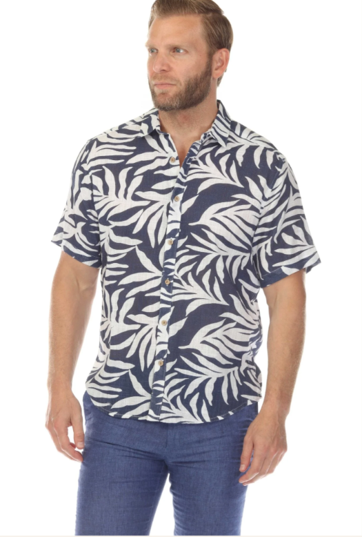 Men’s Button Down Cross Hatch with Tropical Leaf Design